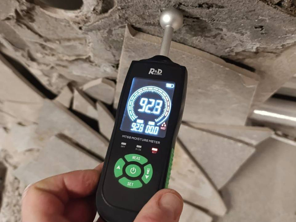 Вода может проникать через строительные материалы. Она может проходить через стены, полы и потолки, особенно если они сделаны из пористых материалов, таких как гипсокартон или дерево. В такой ситуации наши эксперты найдут утечку специальными приборами. Вода, которая просачивается через трубы или стены, может оставлять видимые следы, такие как пятна или плесень. Однако, это не всегда так, особенно если протечка маленькая или вода быстро высыхает.